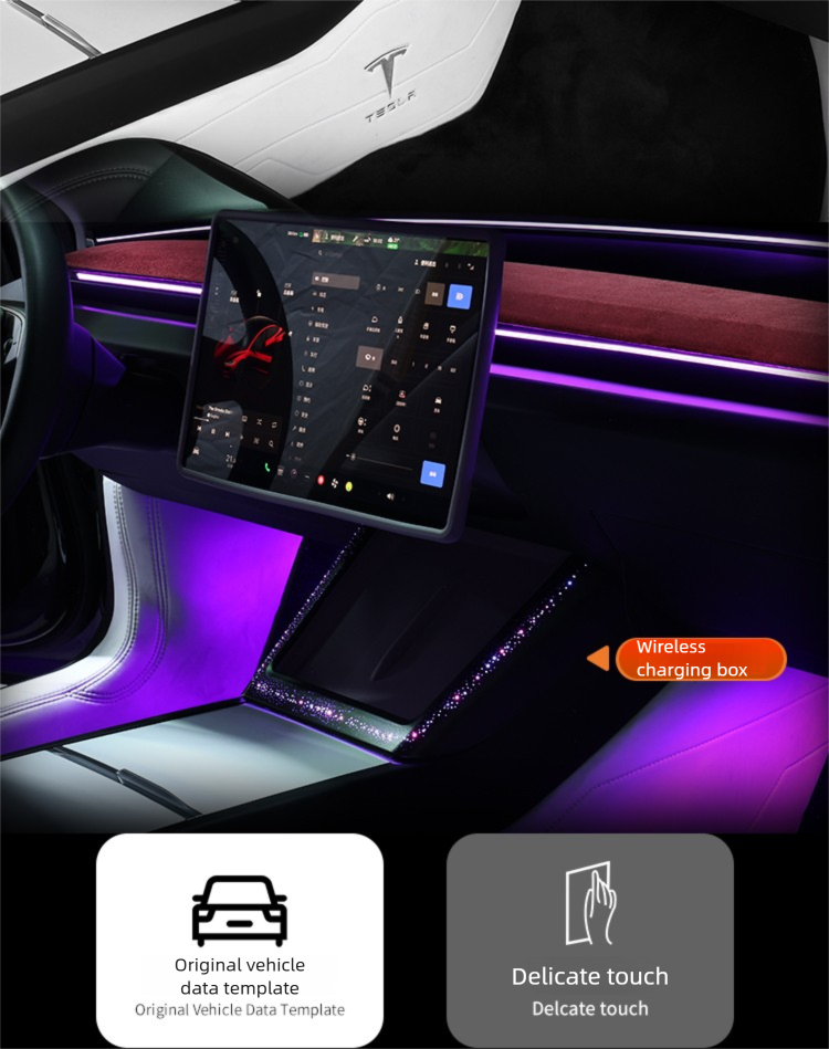 Galaxy-Inspired LED Lighting��?Creates a mesmerizing star-river glow around the wireless charger with breathing modes, multi-color fusion, and synchronized color-changing with Tesla��s ambient lighting.
