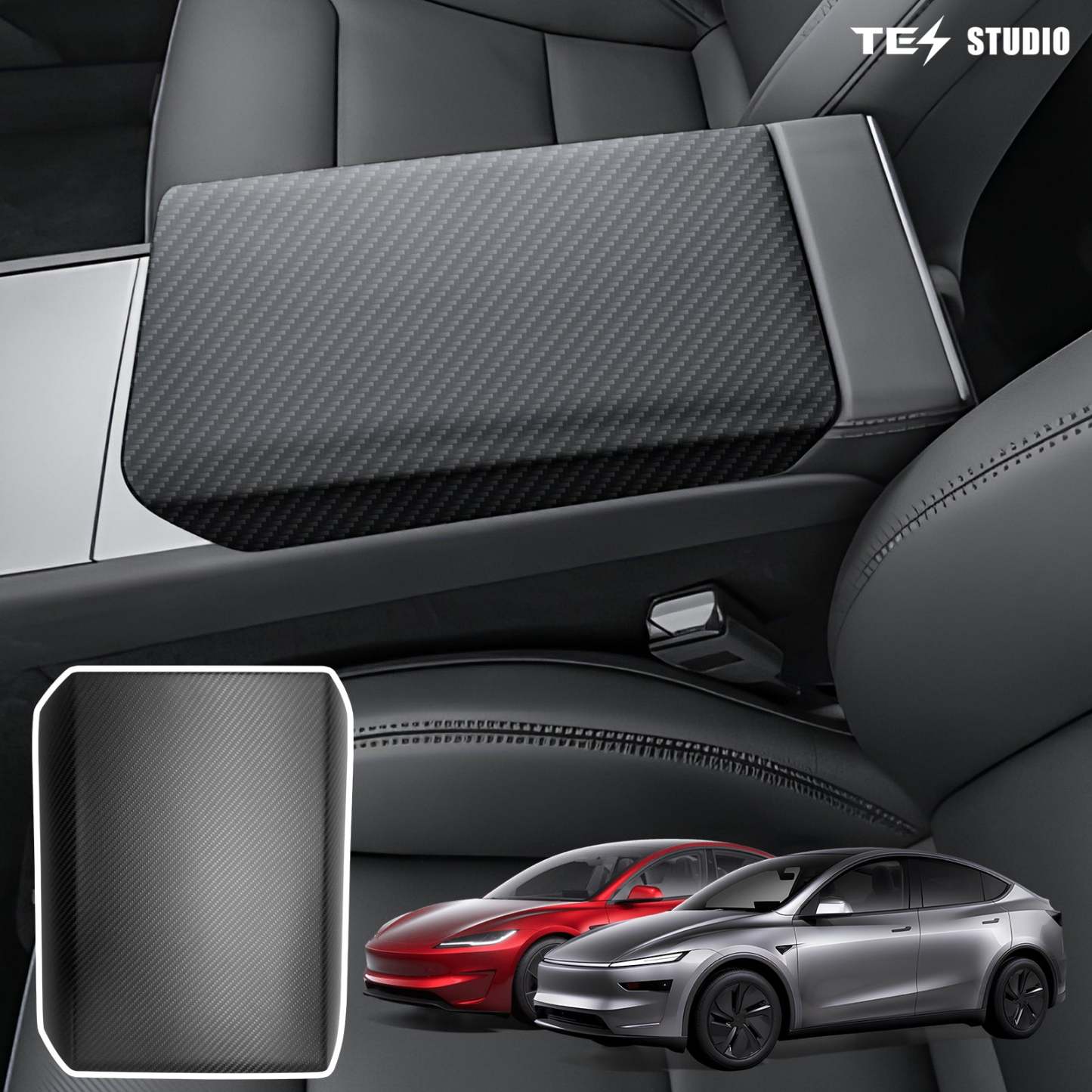 2025 2026 Real Carbon Fiber Center Console Armrest Cover Trim For Tesla Model 3 /3 Highland Model Y/Y Juniper