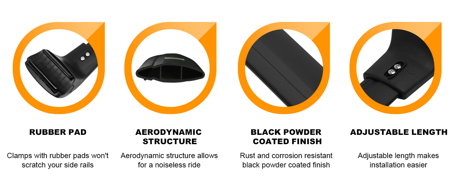 Built for a lifetime of use, featuring die-cast aluminum clamps combined with upgraded heavy-duty 2.4mm thick aluminum bars. The black matte powder-coated aluminum body offers long-lasting, corrosion-resistant performance.