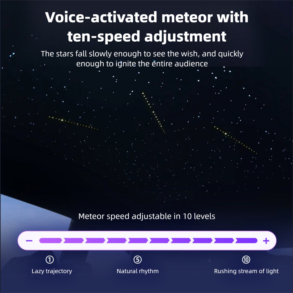 Precise Lighting Control: 10 levels of brightness adjustment; the voice-activated meteor shower also supports 10 speeds—from "slow enough to make a wish" to "fast enough to ignite the scene."